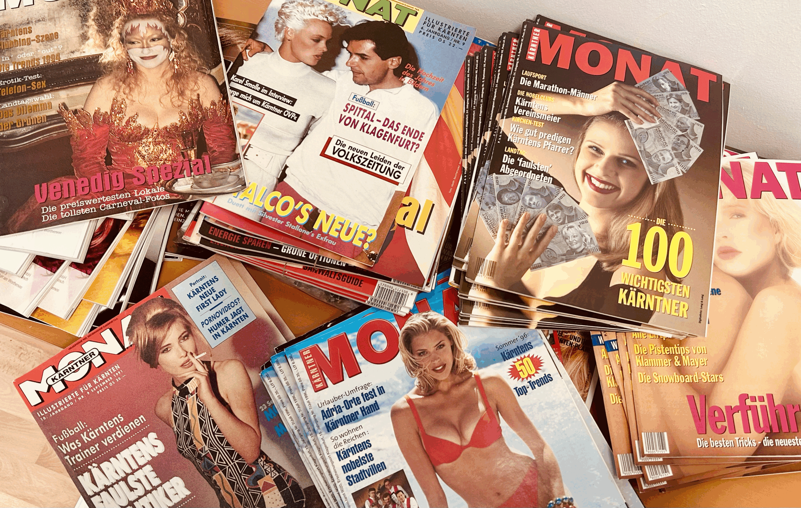 In 45 Jahren waren einige Schmuckstücke dabei – spektakuläre Events, pikante Dramen, Superstars am Cover und Reportagen, die heute völlig aus der Zeit gefallen scheinen – und noch vor einigen Jahren aber exakt den Puls der Zeit getroffen haben. Da waren große Namen, Stars, Umbrüche in der Gesellschaft und turbulente Zeiten in Politik und Wirtschaft. Aber auch viele Parties, viel Glamour – und zeitweise viel nackte Haut. Das war der Kärntner MONAT, das Kärntner- und Alpe-Adria-Lebensgefühl. Und dazwischen haben wir uns weiterentwickelt. Mi neuen Gesichtern, neuen Themen, neuen Herausforderungen und in Wahrheit einer völlig neuen Welt. Wir sagen DANKE für das Vertrauen und die Begleitung – in all den Jahren, heute und in der Zukunft.